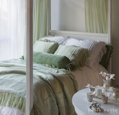 Next up is Mint Julep. A very soft and delicate green that looks like mint ice cream. Your guest bedroom will never look more inviting than if you bed were dressed with minty cream itself.