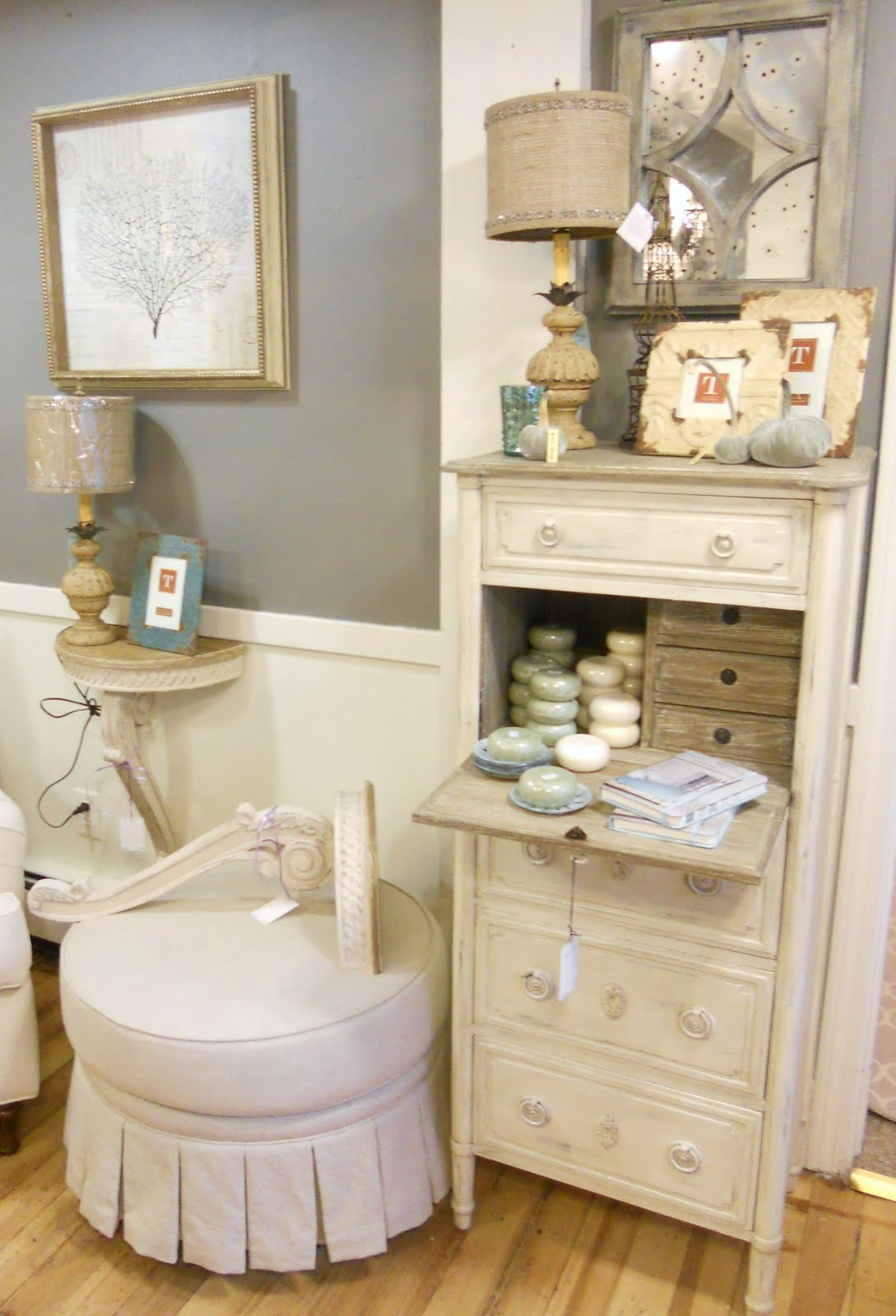 We've been at it again. Changing things around is what we like to do. See our newly painted room in Chelsea Gray, with gorgeous french distressed inspired pieces and decor. Then Hi Ho, Hi Ho, it's off to New York we go to find some fabulous items for fall.
