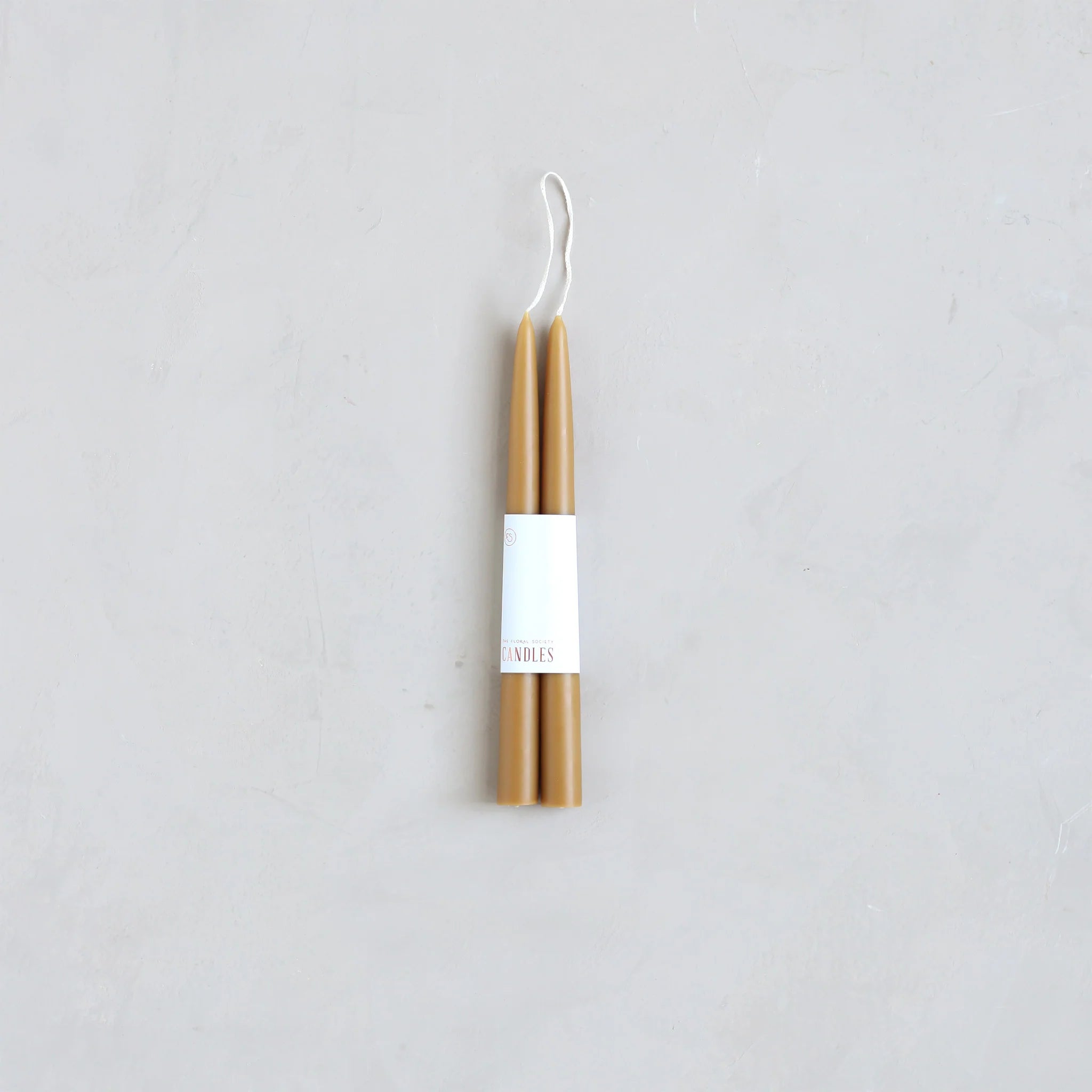 Crafted of a high grade paraffin, our tapers are made in the United States and are designed to burn drip-free at a rate of approximately 1 hour per inch.