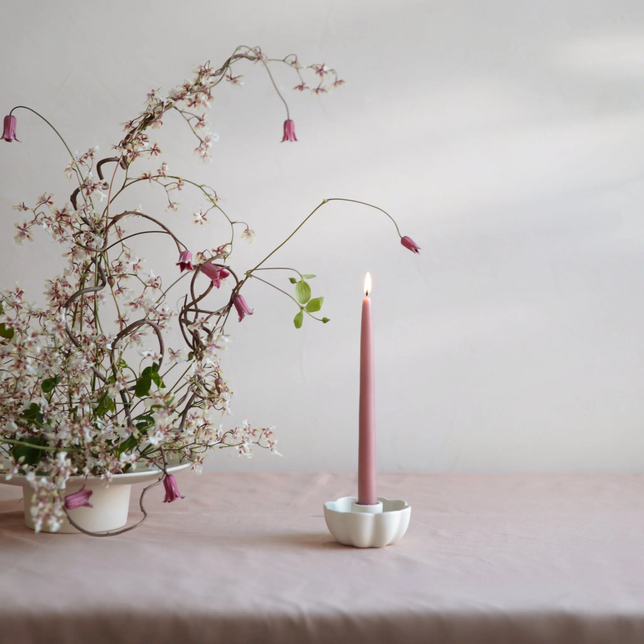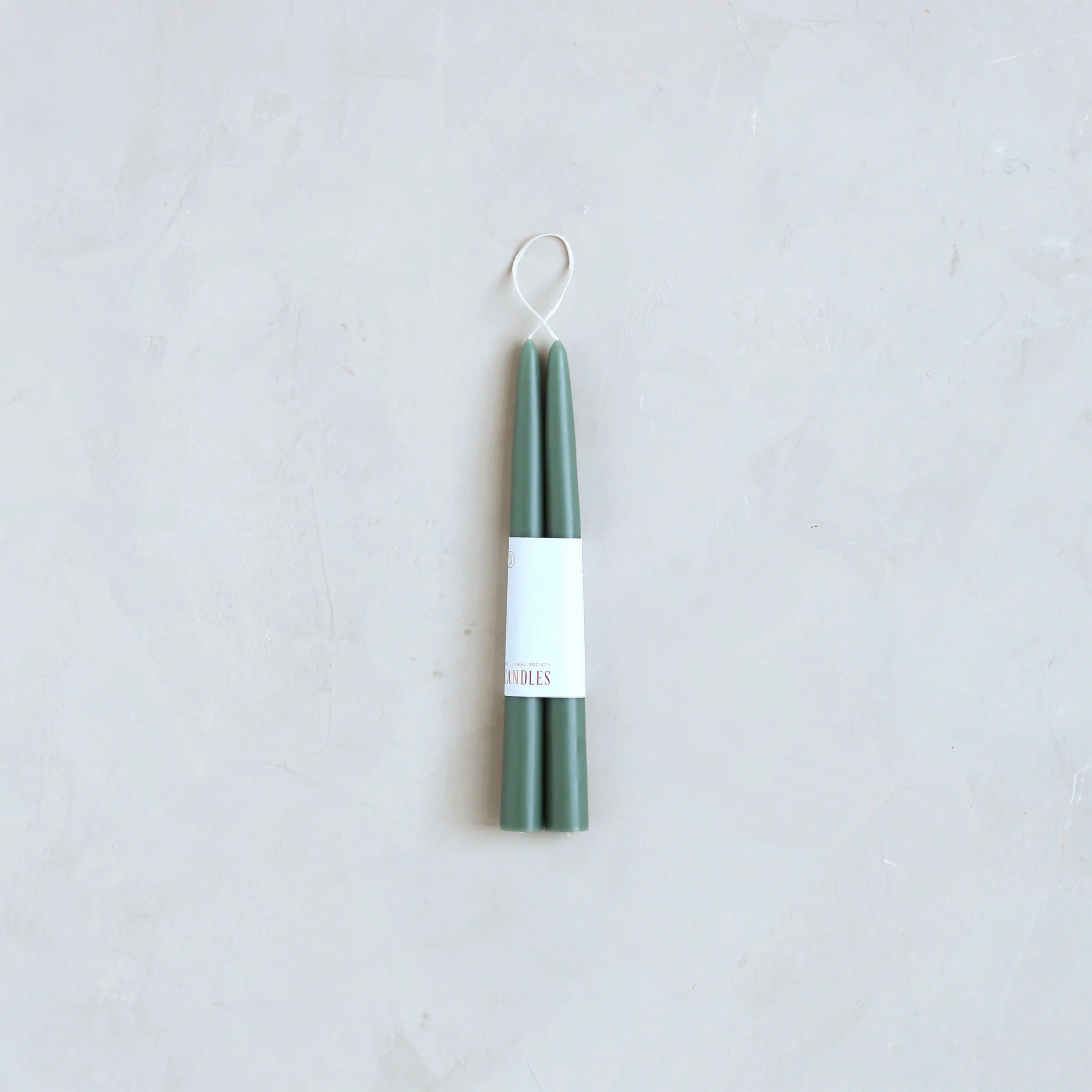 Hand-molded and embody a superior depth of color. A cotton wick is used for the cleanest burn, and the base is sized to fit a standard holder. Each 9" candle is crafted to burn for nine hours. Subtle variations in wax depth and color opacity may occur.