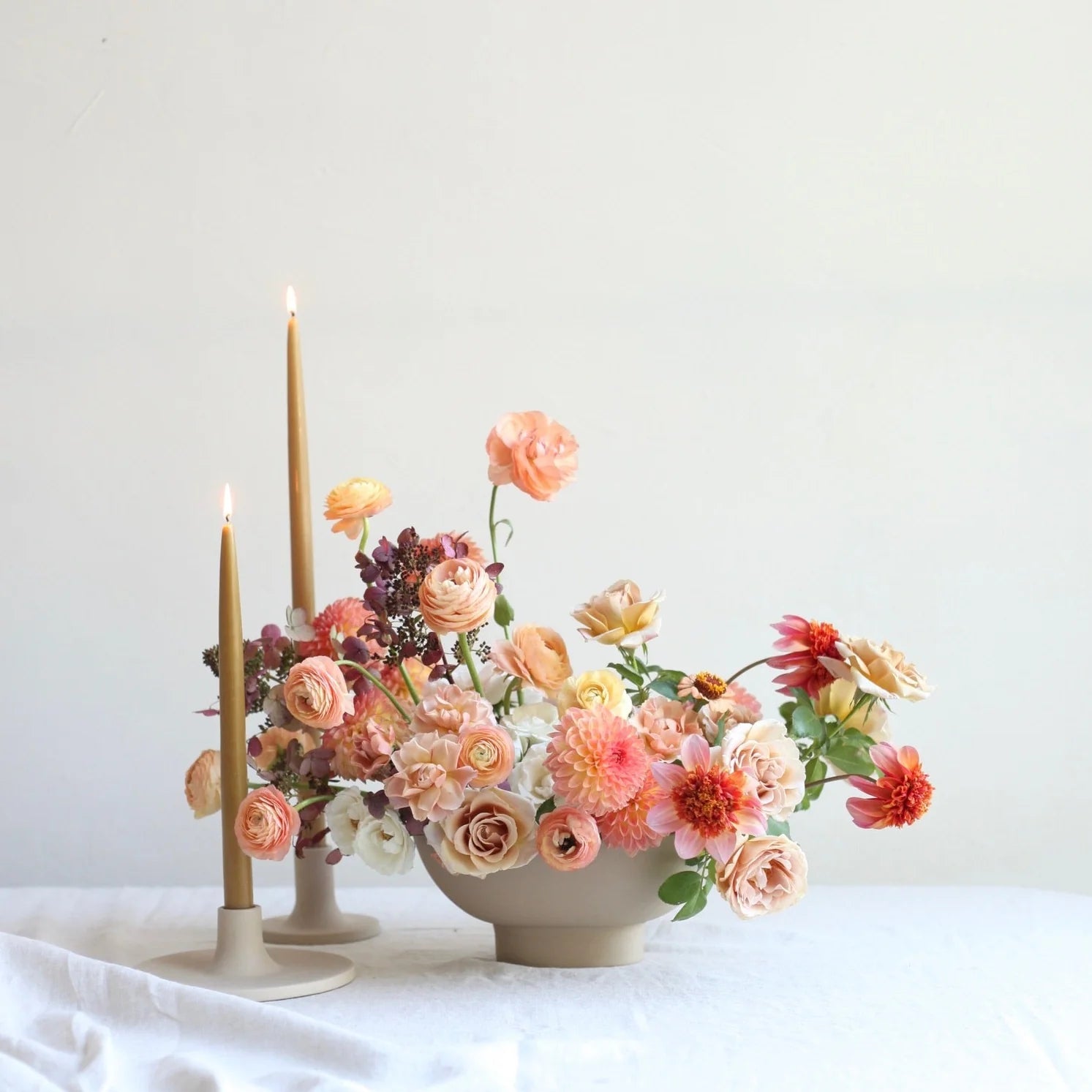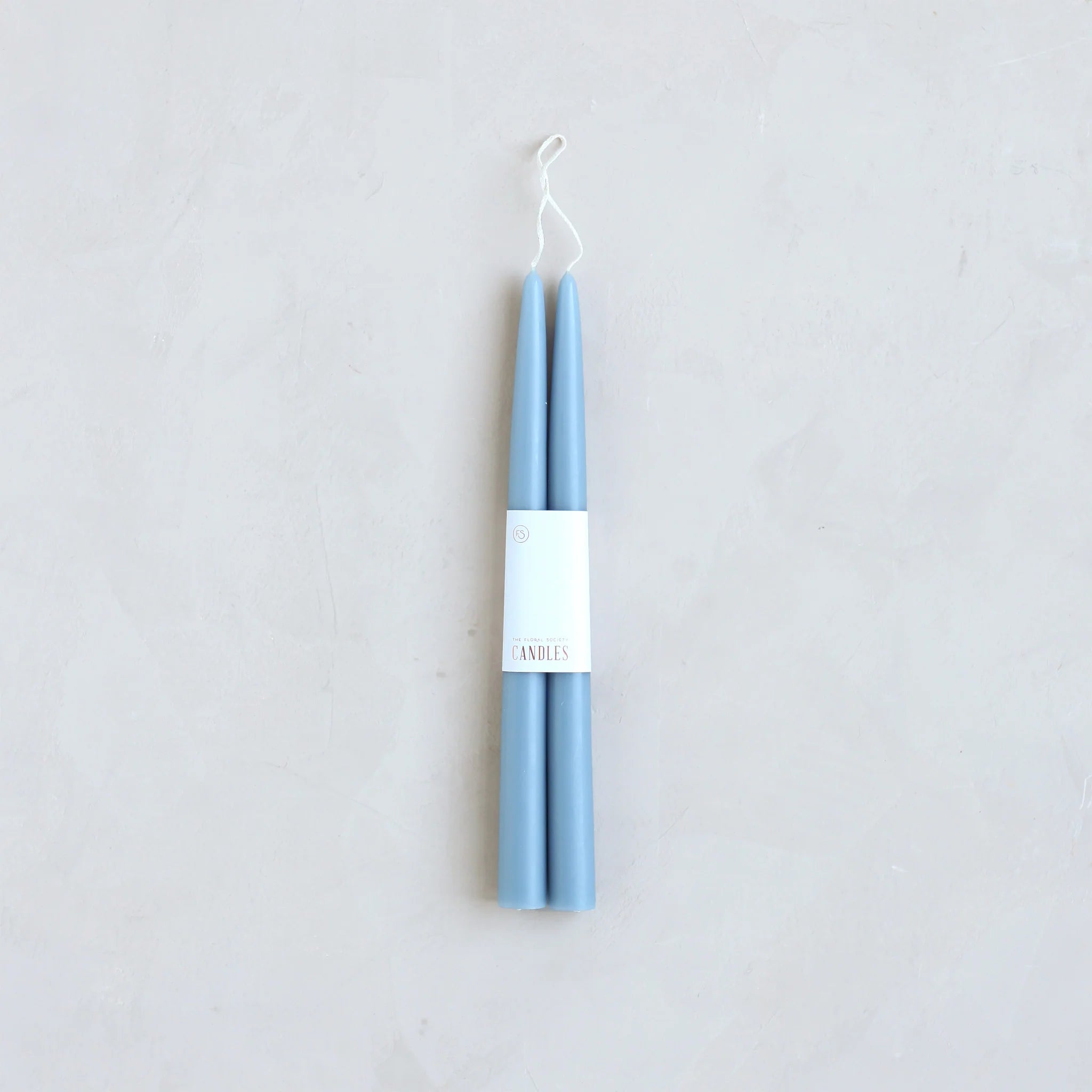 Hand-molded and embody a superior depth of color. A cotton wick is used for the cleanest burn, and the base is sized to fit a standard holder. Each 12" candle is crafted to burn for twelve hours. Subtle variations in wax depth and color opacity may occur.