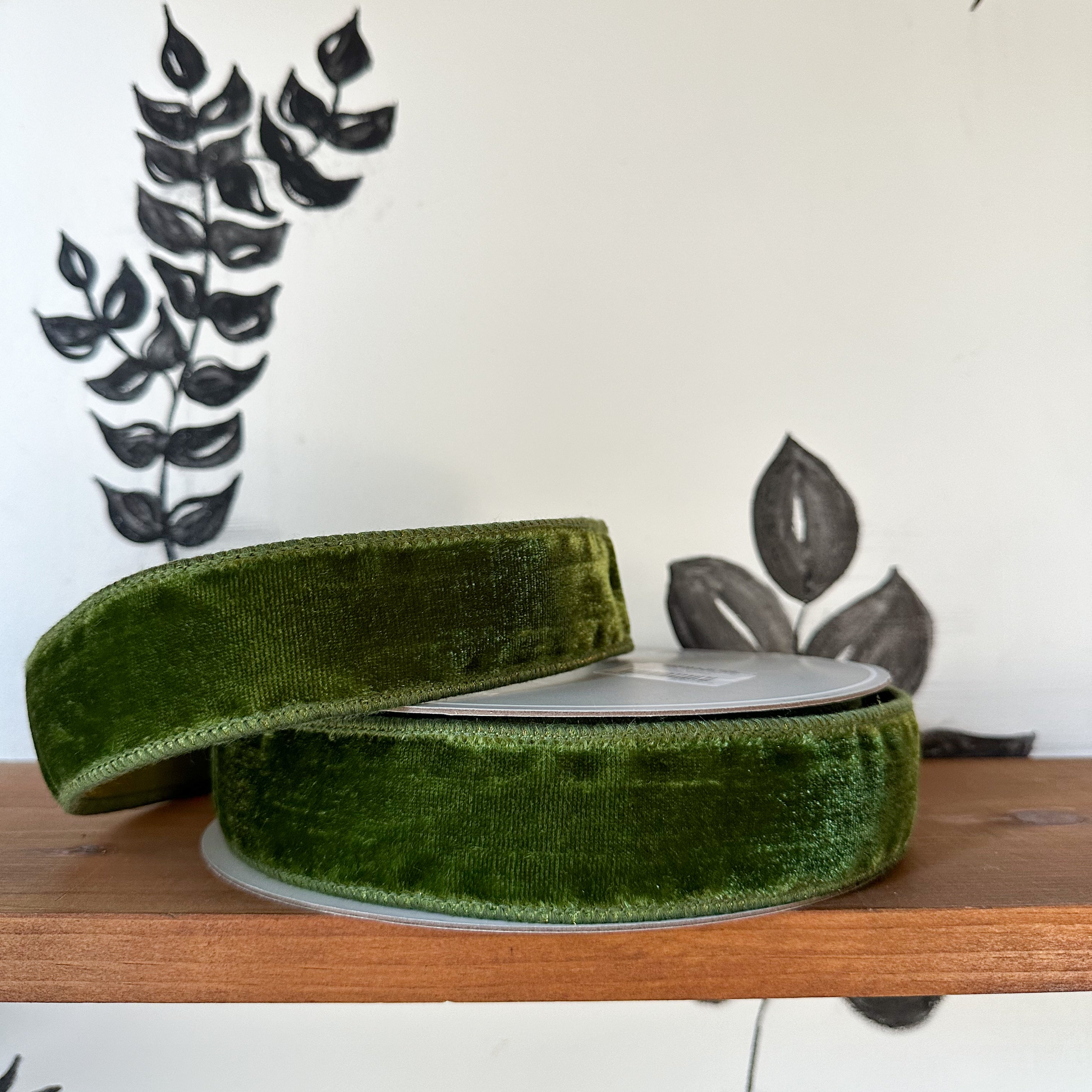The green velvet ribbon brings a rich, elegant accent to wreaths and trees. Its soft, velvety texture adds depth and a natural touch to your holiday décor, perfect for wrapping or enhancing seasonal displays with a timeless feel.