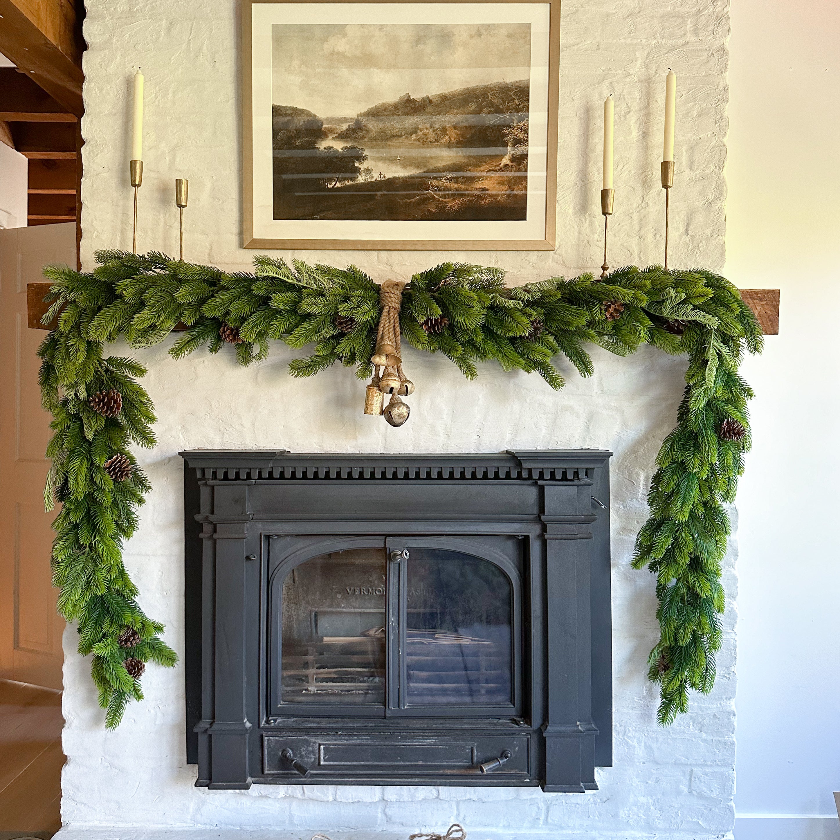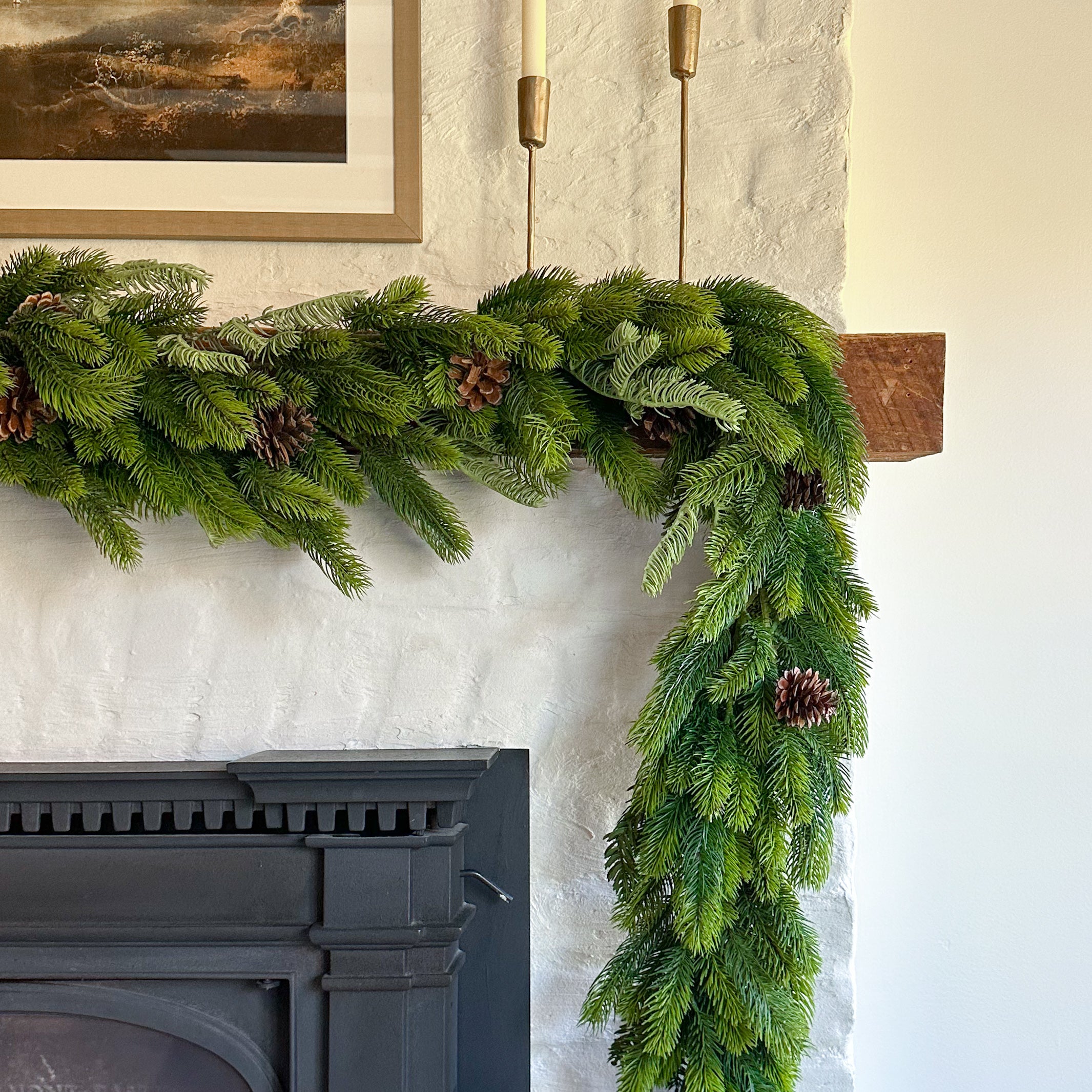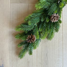 The fir and pine cone garland combines lush green fir branches with natural pine cones, creating a full and timeless look. Ideal for draping over mantels or framing doorways, it brings a classic, woodsy charm to your space.
