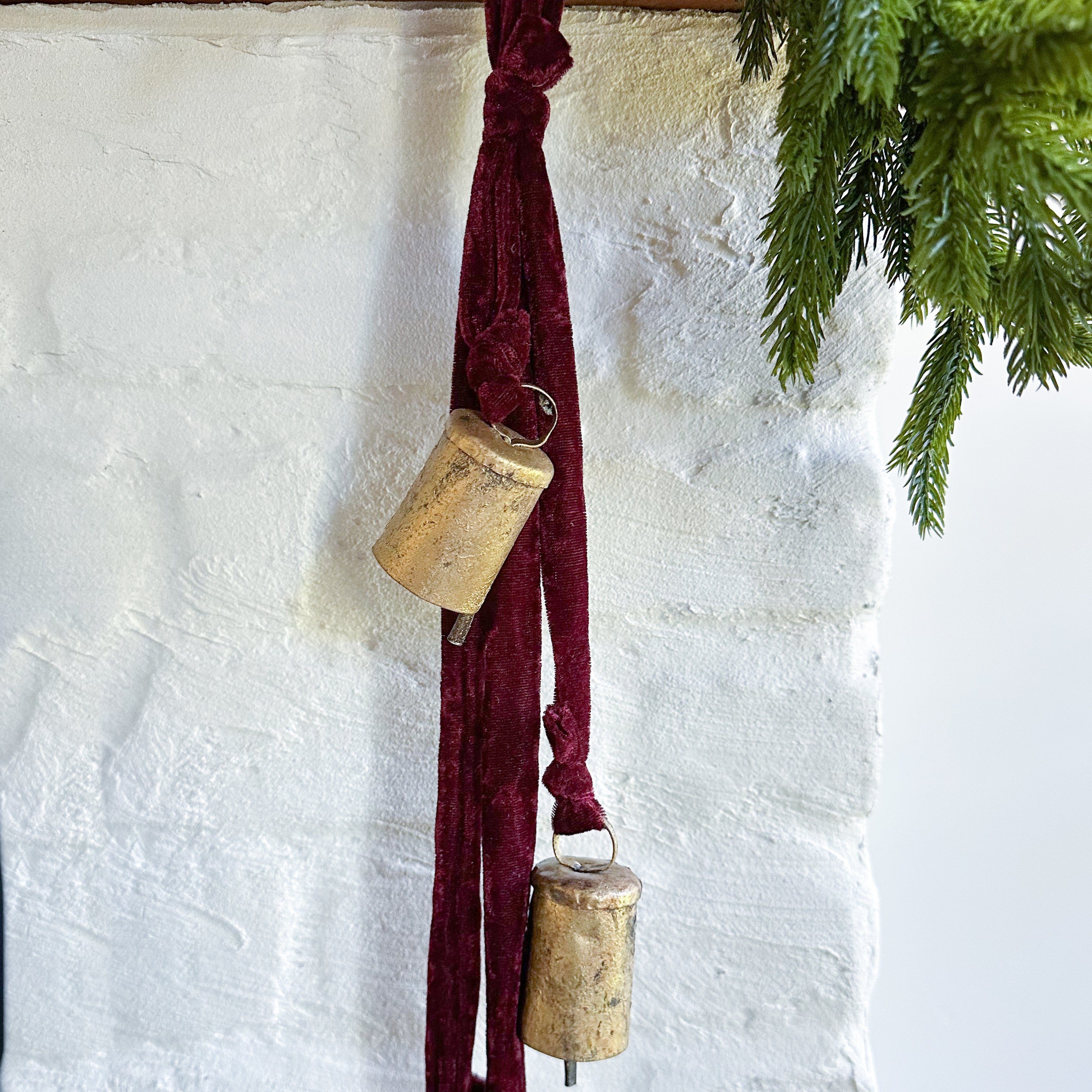 Add a festive jingle to your holiday decor with this delightful cluster of four metal Christmas bells, nestled on a soft velvet rope. Perfect for snagging attention on doors, mantels, or tree branches, each bell offers a cheerful chime that spreads seasonal joy with every movement. The velvety touch adds a cozy, whimsical flair to your celebrations.