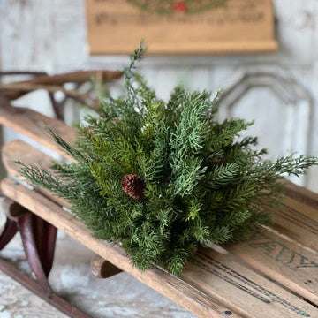 Bring bold holiday cheer to any space with the Tahoe Spruce Half Sphere. These super full faux evergreen sprigs drop in easily, flooding your décor with lush greenery without the fuss of needles or watering. Perfect for adding a playful touch of winter wonder wherever you want a burst of festive spirit!
