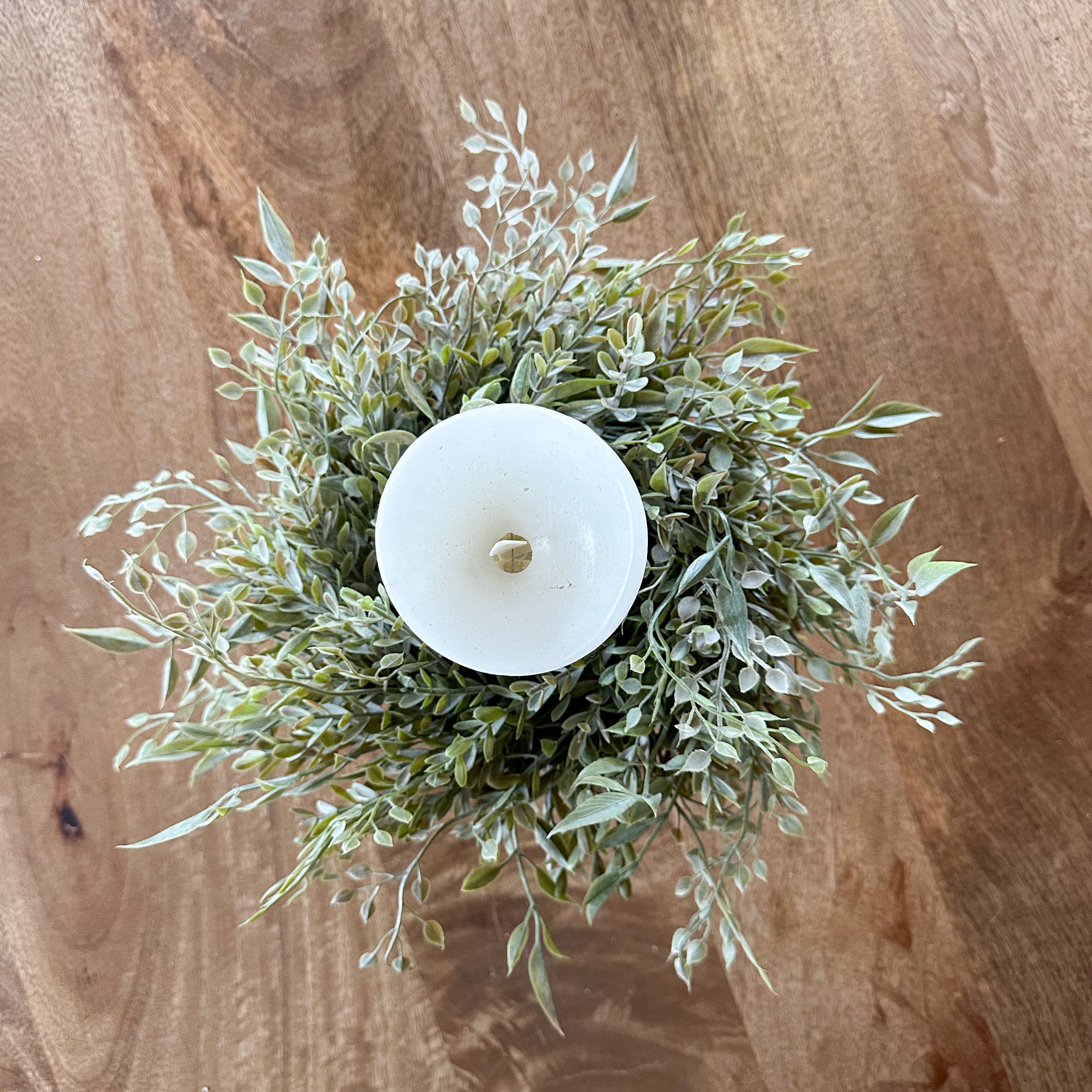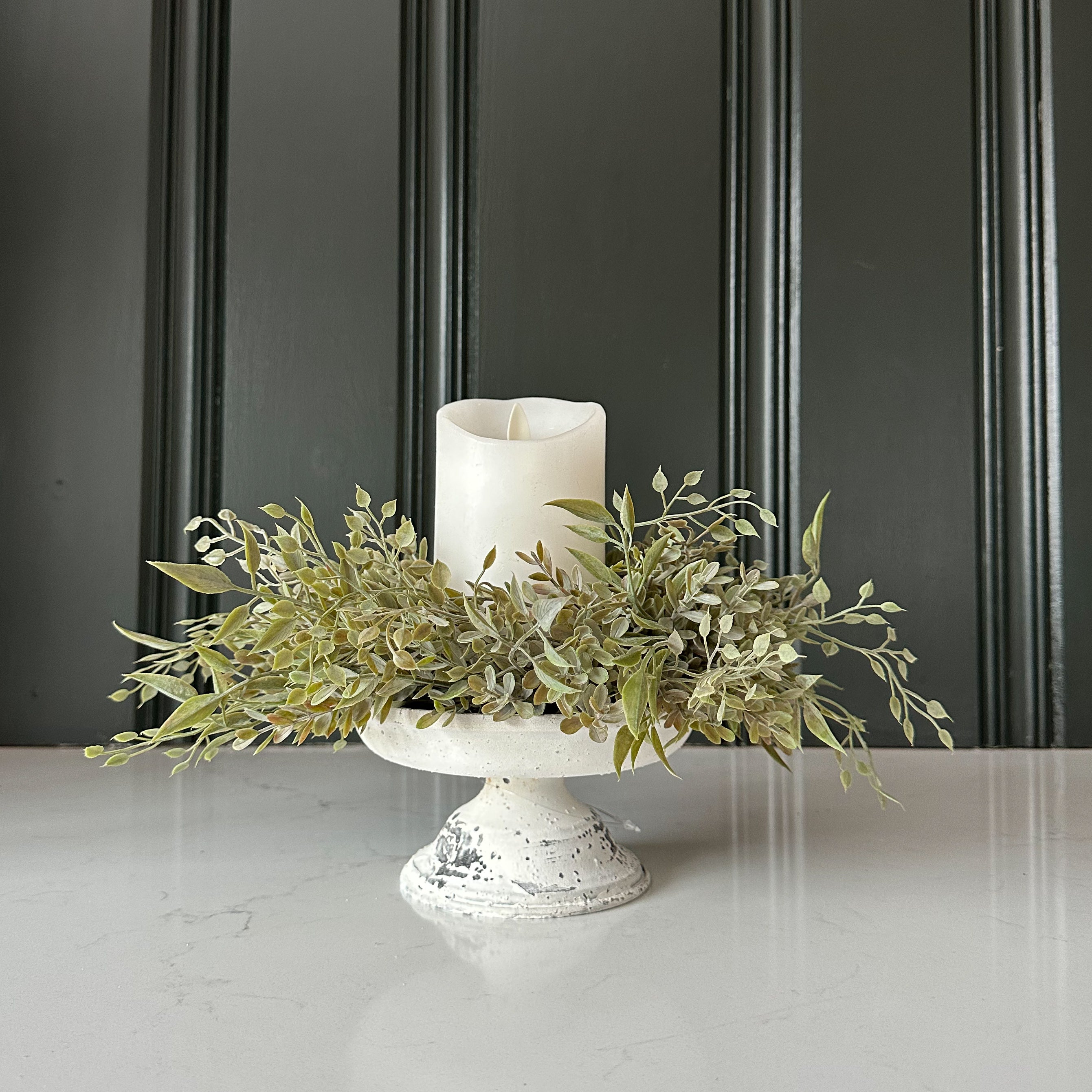 Designed to slip effortlessly over pillar candles, this candle ring features a lush greenery that adds natural texture and garden-inspired elegance to any room. Mix and match with seasonal collections to keep your home feeling fresh and intentional all year long.