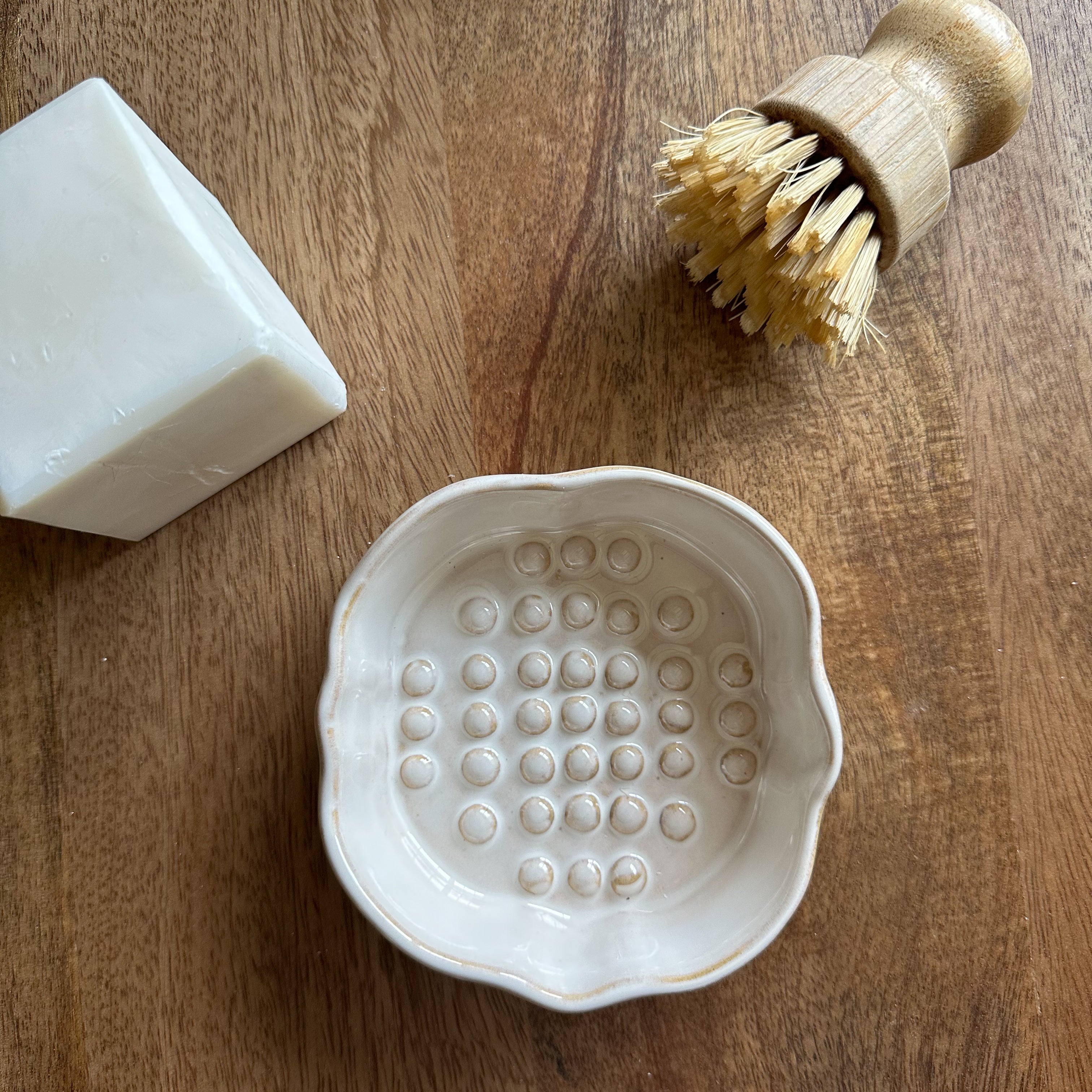 Elevate your sink with the Bowie Ceramic Soap Dish. Its organic shape and subtly translucent glaze add a touch of elegance to your space. Perfect for holding soap or small items. This small accent dish has so many possibilities.