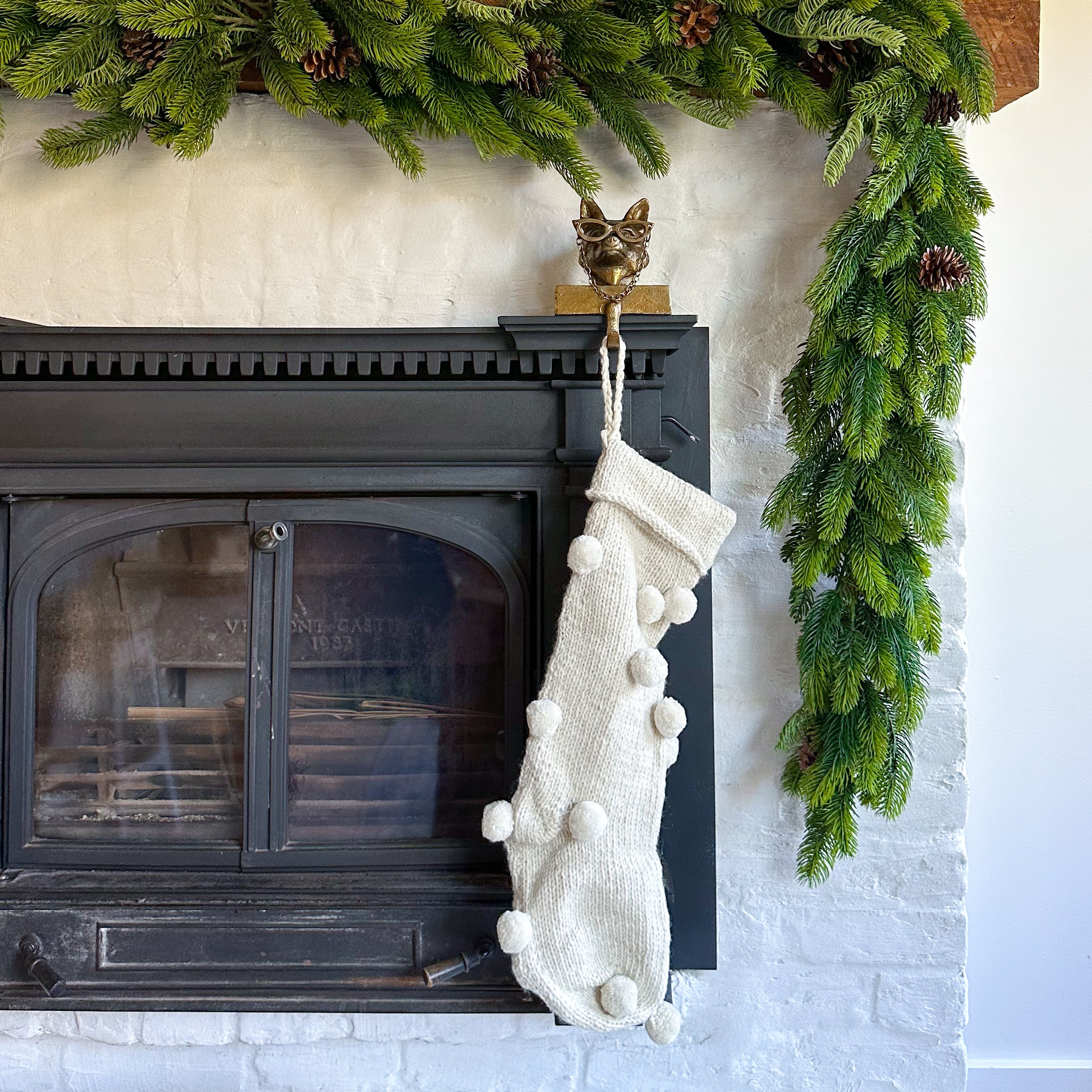 The ivory knitted pom pom stocking offers a cozy, textured look that adds warmth to your holiday décor. Featuring playful pom poms, it’s perfect for hanging by the fireplace or displaying on a mantel. A charming accent for your festive celebrations.