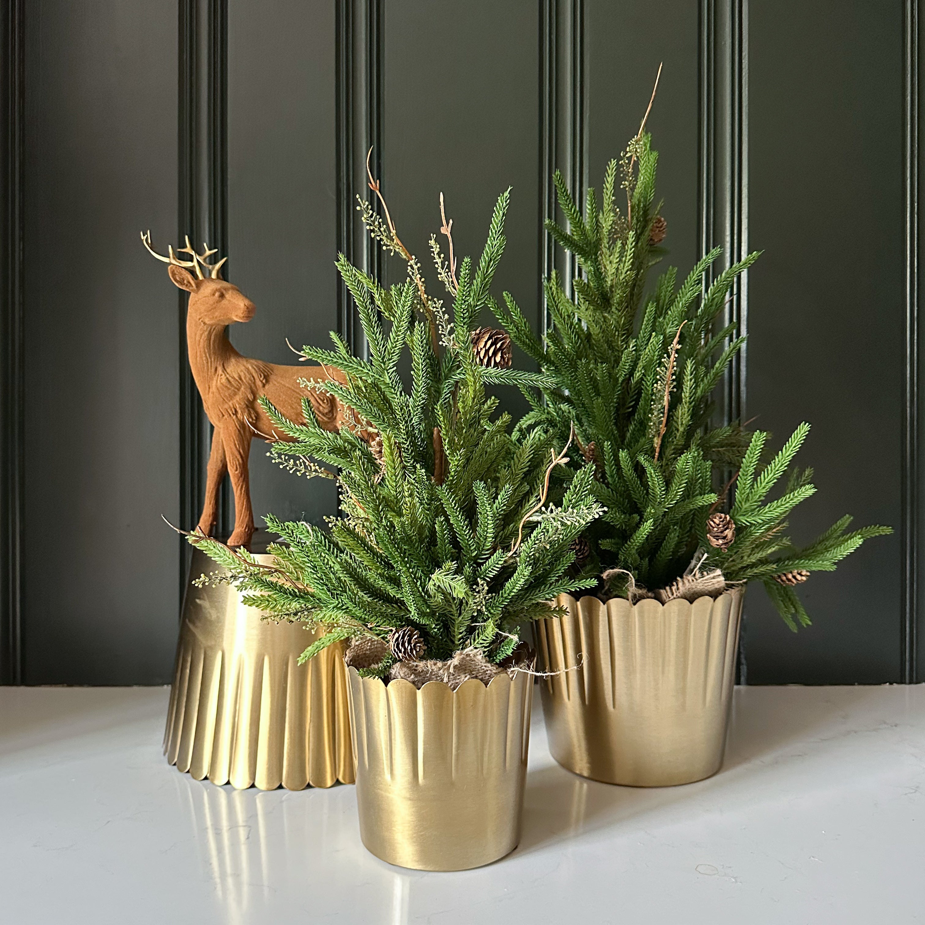 All that golden shine for the season. Place your faux and real holiday greens and floral right in. 3 sizes available