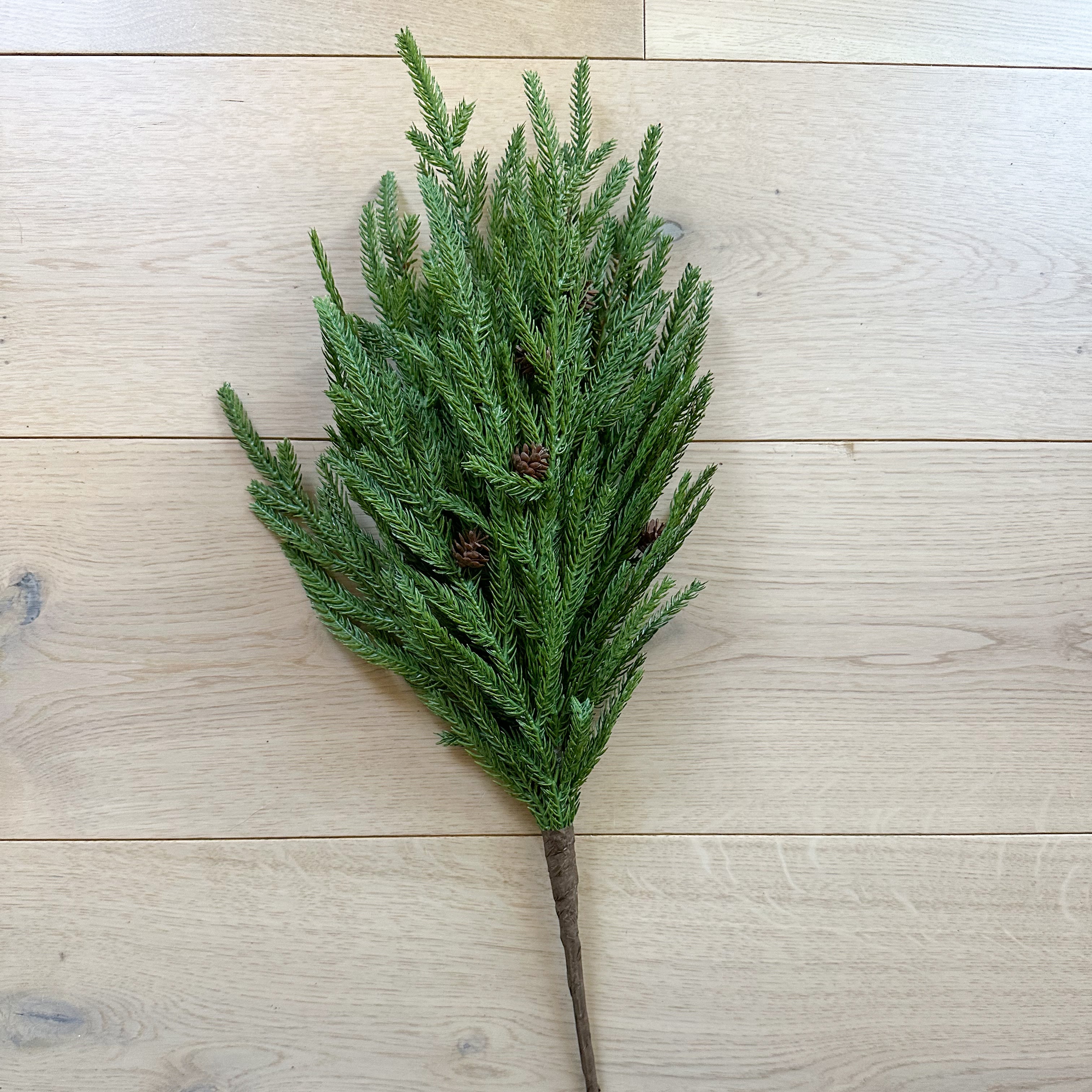 Add a playful touch with our Norfolk Pine Bush with Mini Pine Cones. Soft, lifelike sprigs perfect for vases and arrangements that feel just like the real thing.