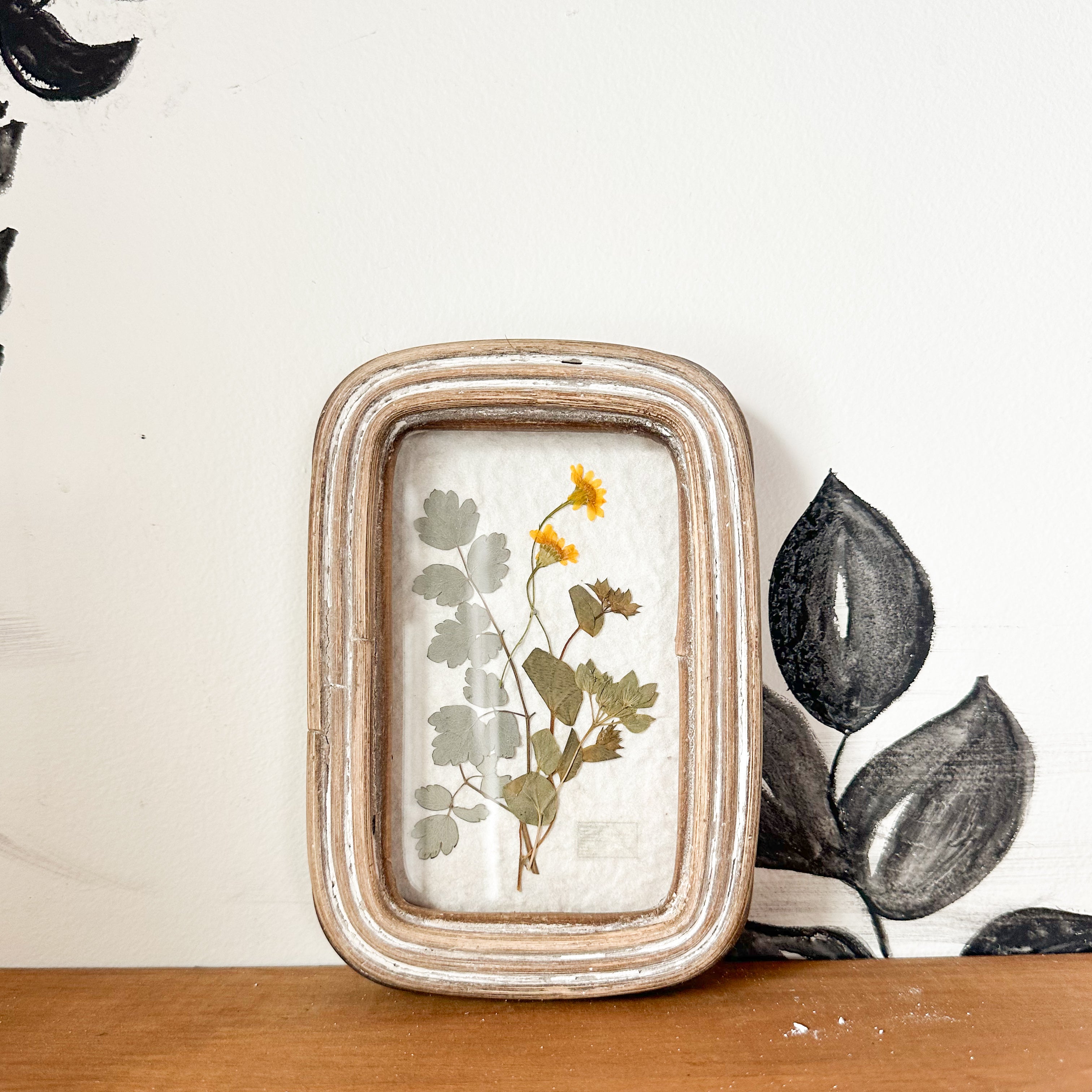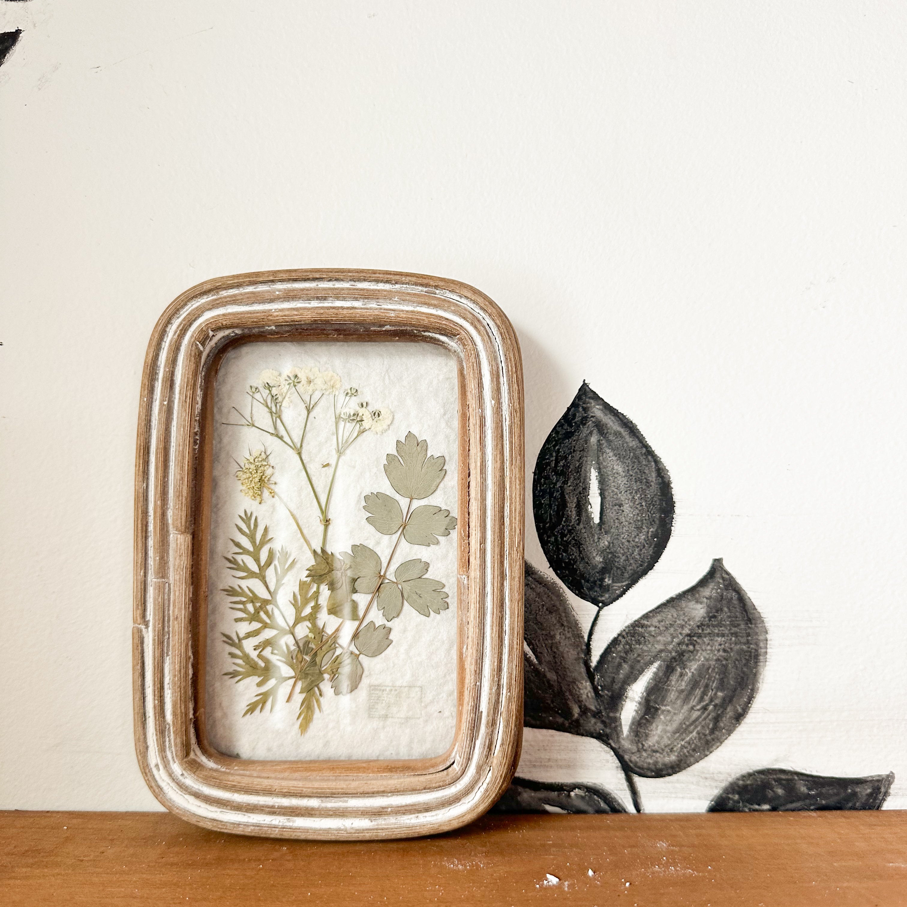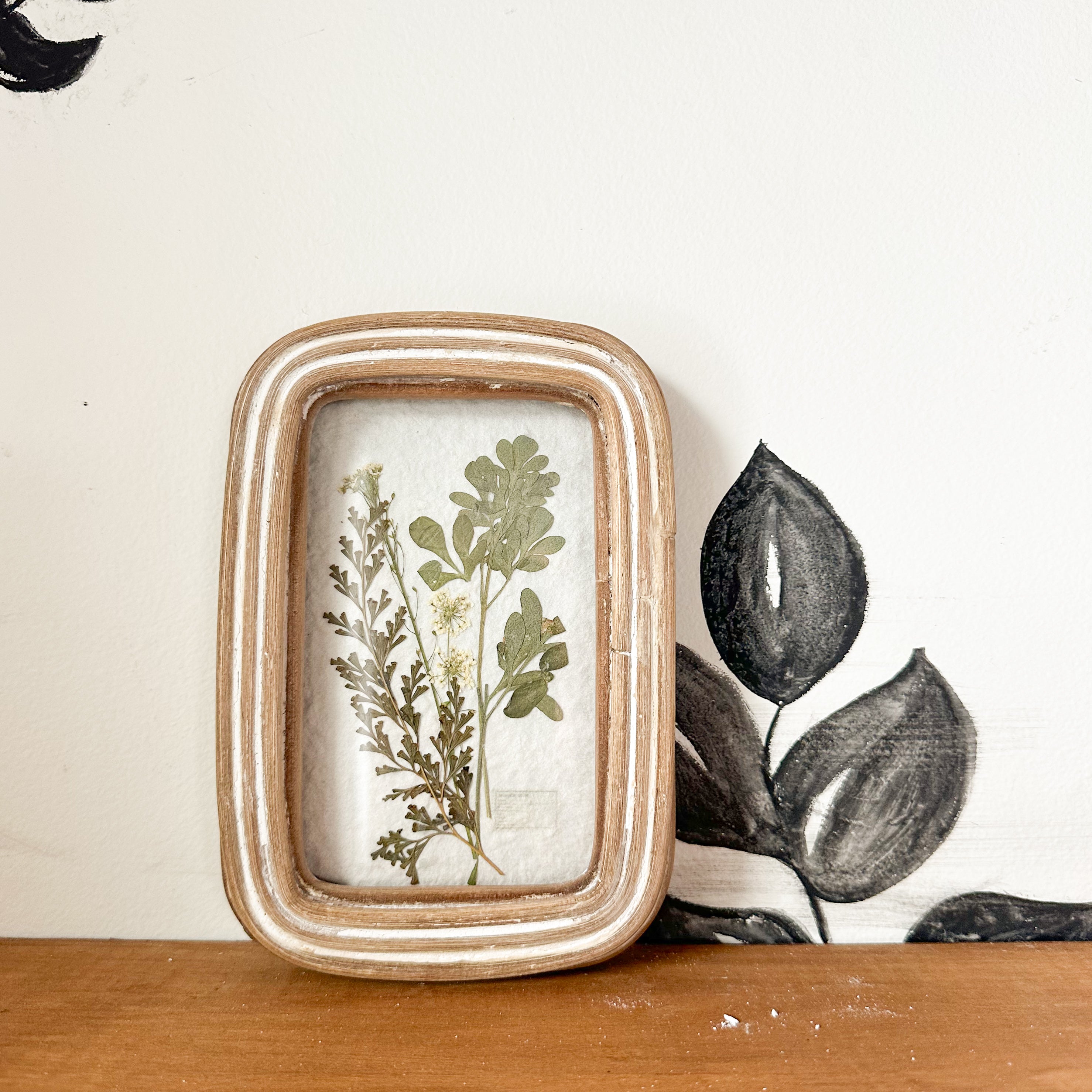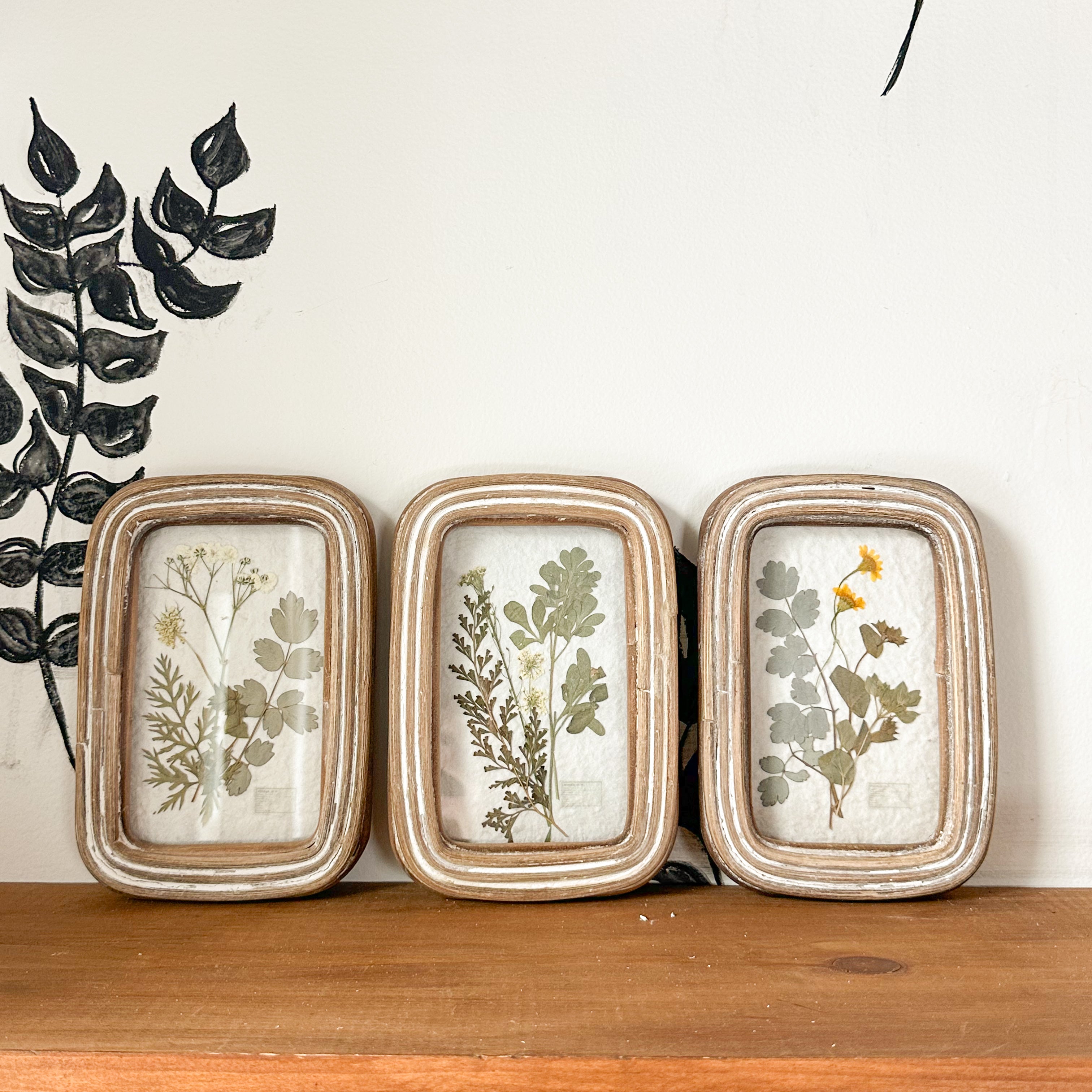 Our most popular pressed botanical, bow comes in a mini version. These are really dried flowers and leave in a pretty carved frame, in three styles.