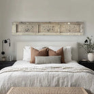 Beautiful old European windows get a new life with with three panes of aged floral bouquets printed on natural canvas. Just t eh right amount of shabby and chic.