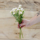 A beautiful petite bundle of snowy white blooms. Great for vases and arrangements.