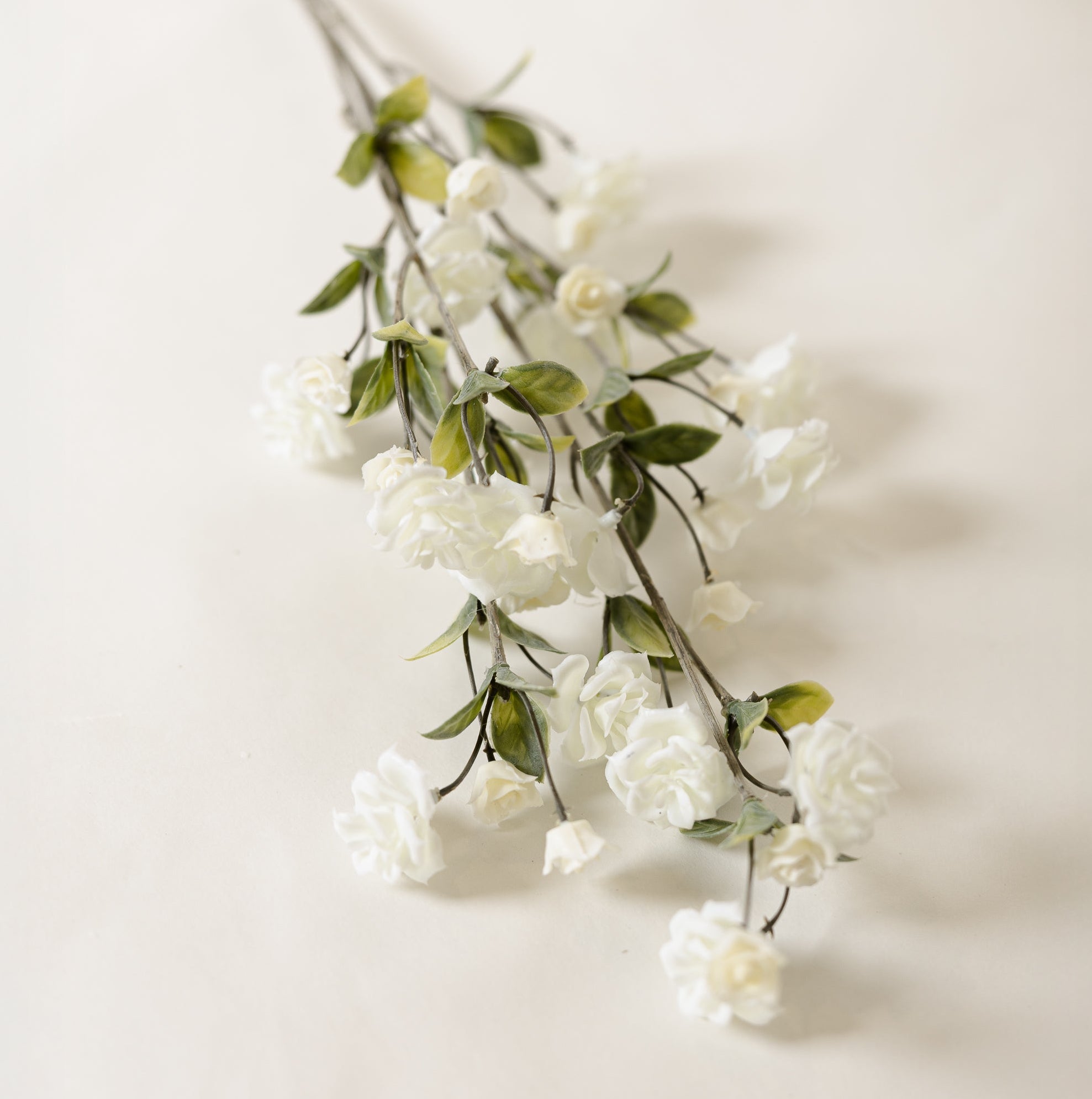 Delicate ivory roses cascade abundantly along each stem, creating an effortless, garden-fresh arrangement. Perfect for layering into bouquets or displaying alone, these florets bring understated elegance to any space.