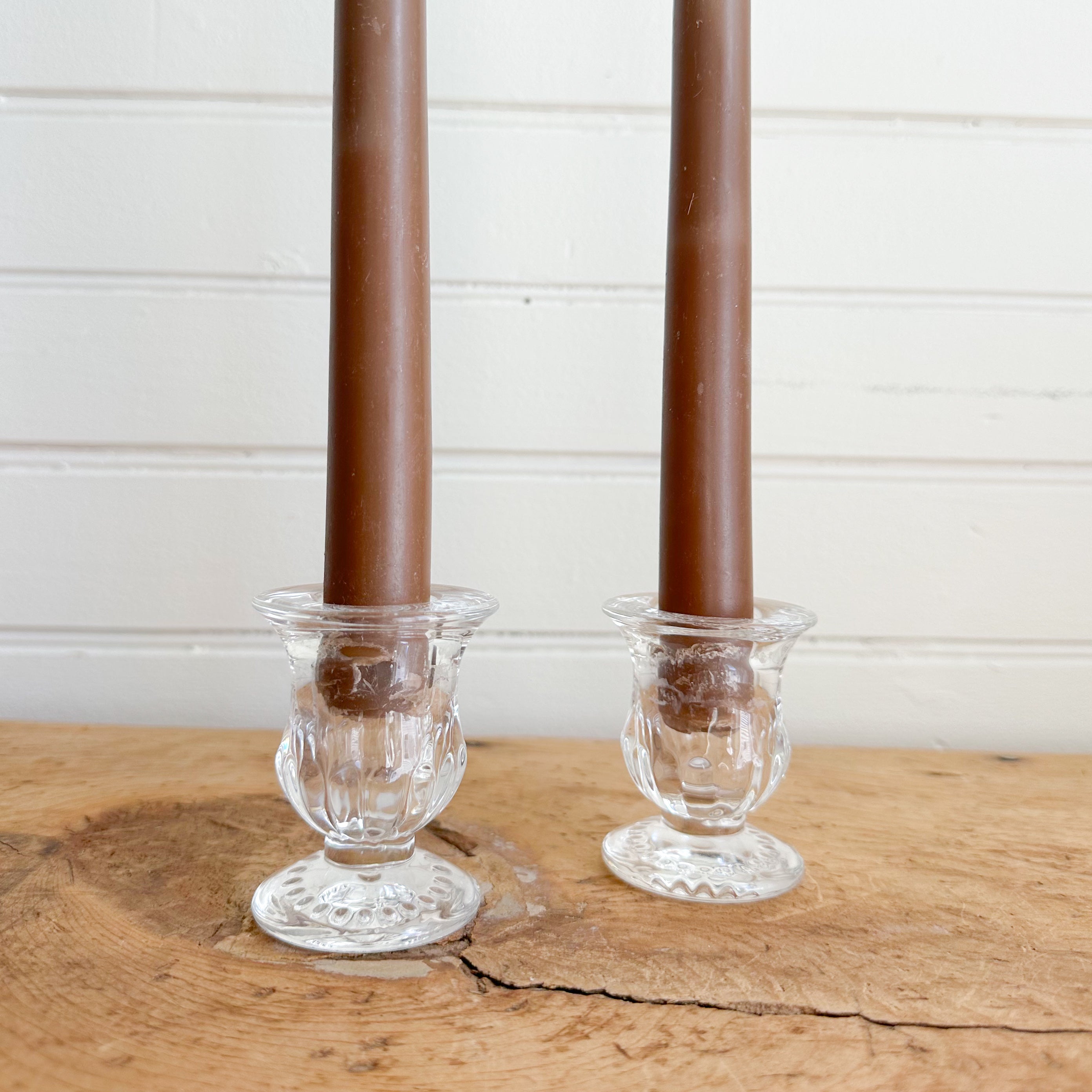 Super simple pressed glass taper holders for the sweetest look. Theirs a vintage vibe that reminds me of a country estate filled with your most favorite people around the dinner table.