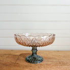Pressed glass in the most beautiful rose tone with a teal base is so fabulous I almost don't have words. Fluted details and a scalloped edge make it extra special.