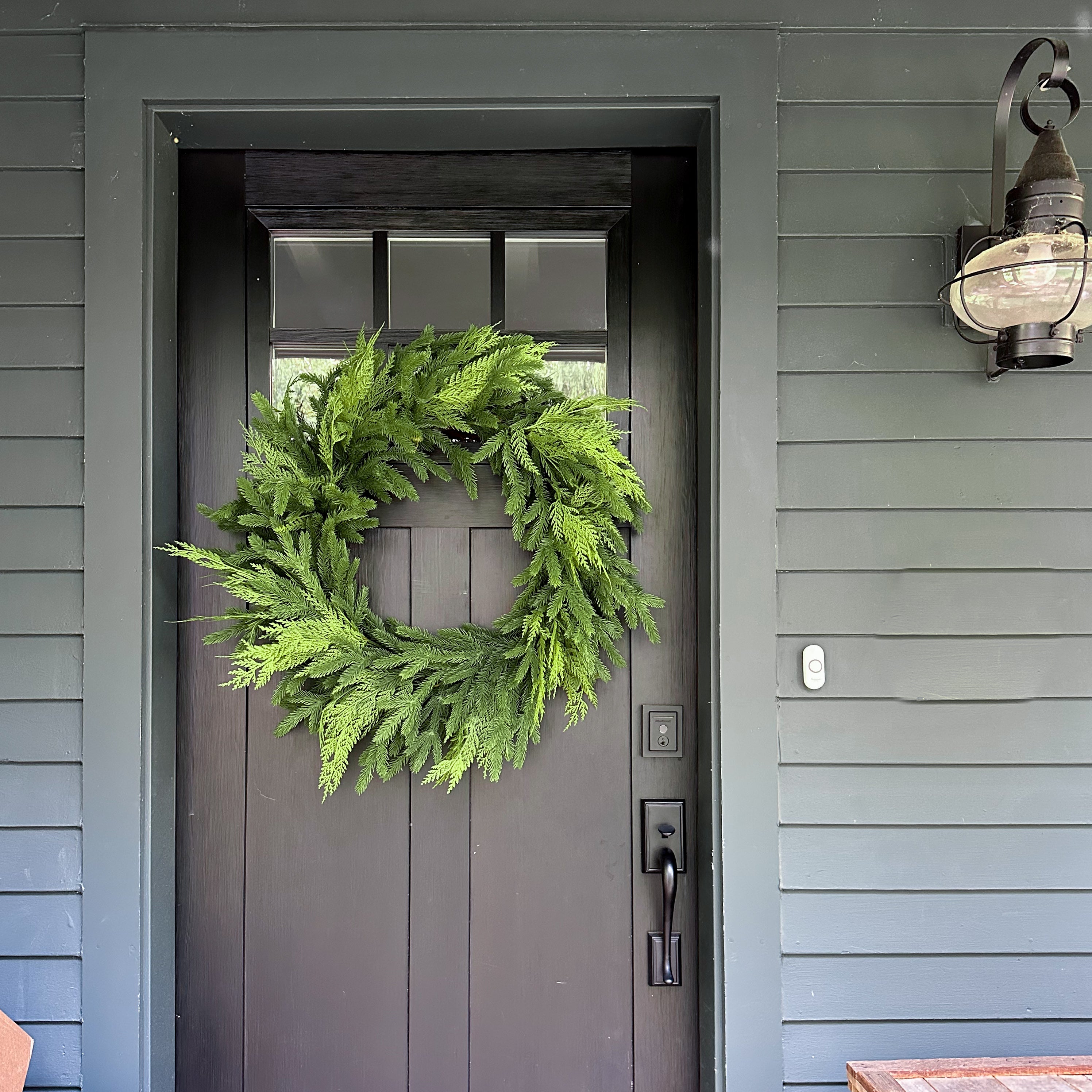 The Wildwood Evergreen Wreath is a full, fabulous holiday accent featuring rich, natural looking faux greenery. Its lush branches add timeless sophistication and seasonal warmth to any space.