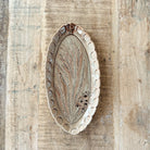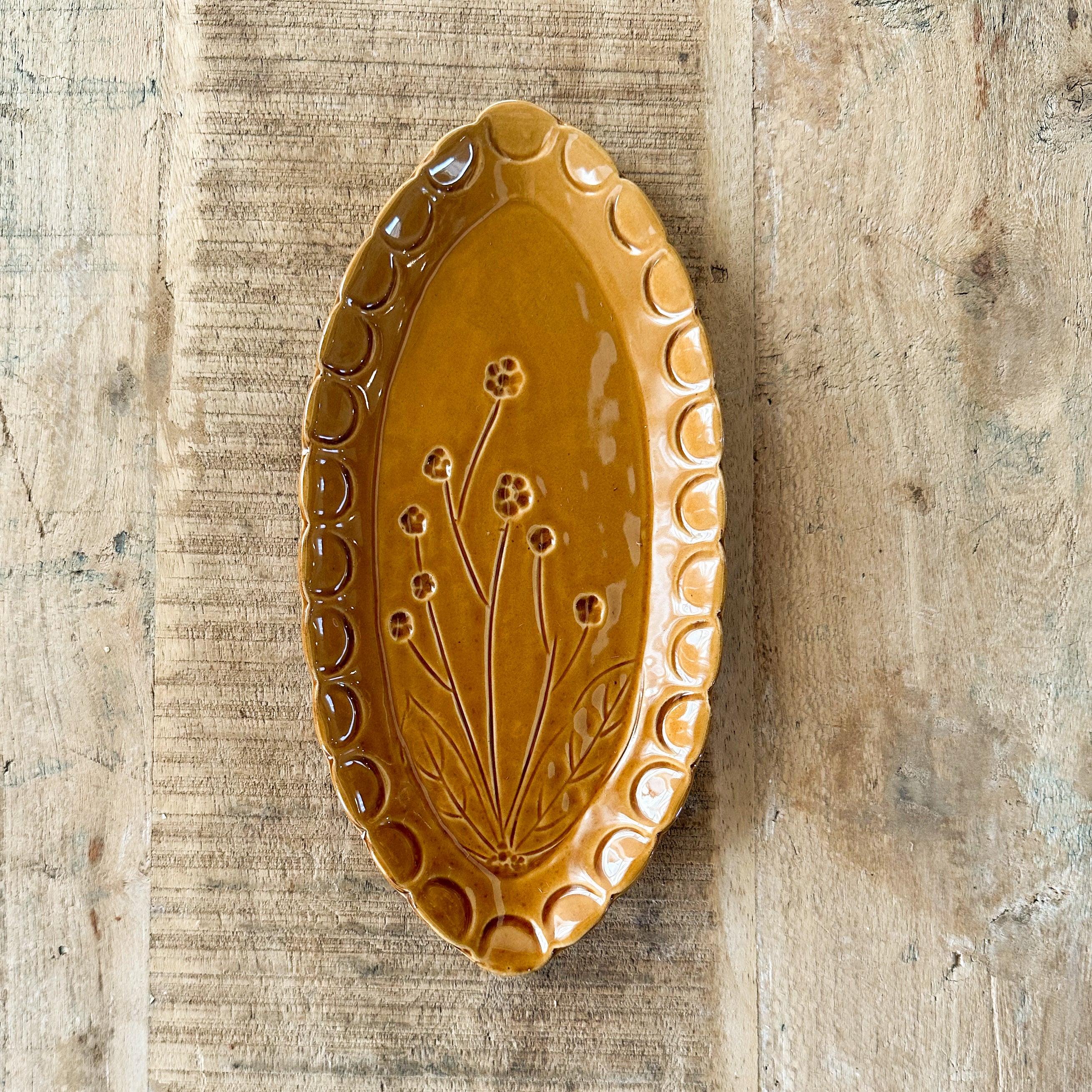The Autumn Ruffle Oval Dish comes in four colors and can be used for serving or as a decorative piece. Its simple design fits well in any setting.