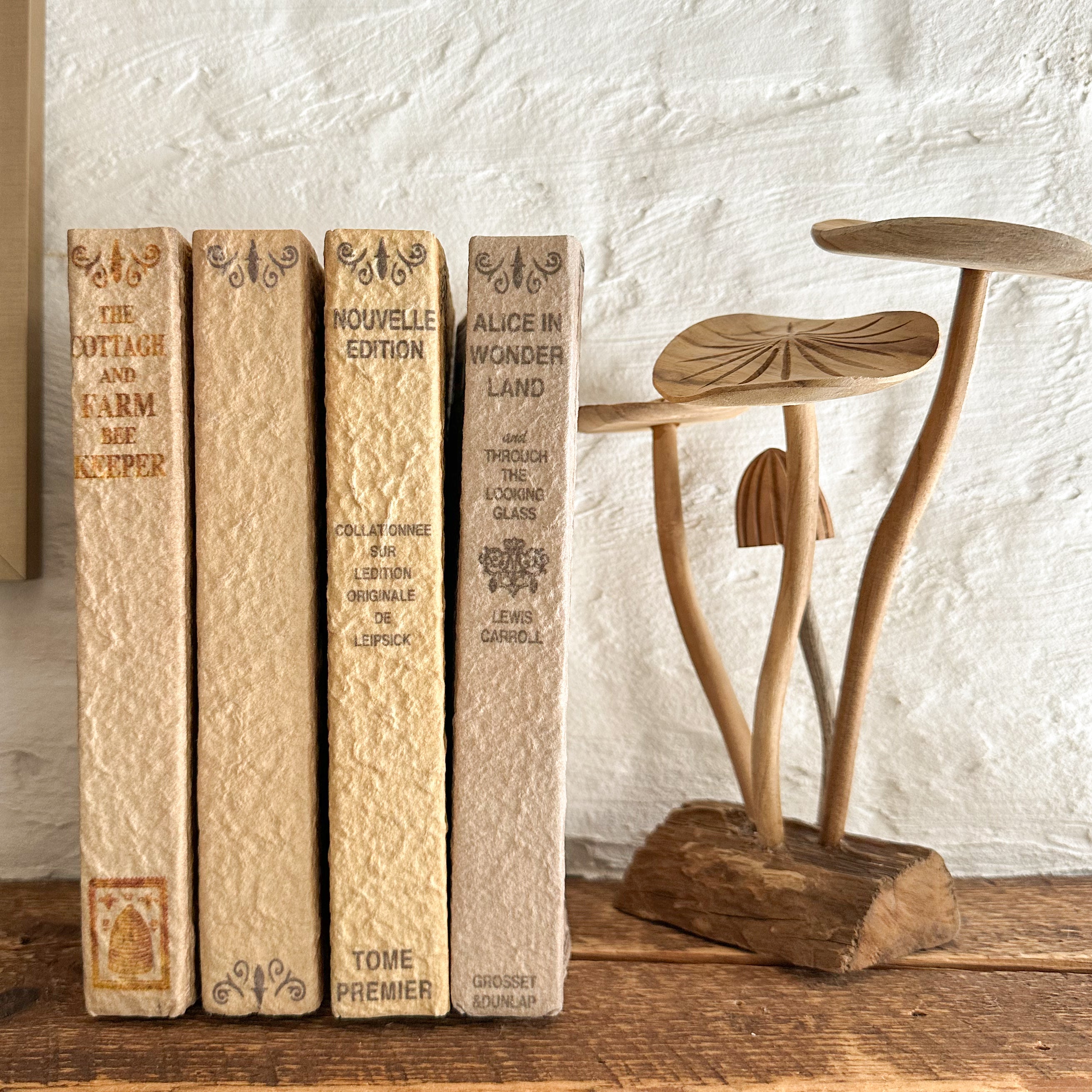 Nature is calling, the mushrooms wan you to know that they are here to stay. These carved cuties want to nestle with you favorite books and dream about the fairies in the wild.