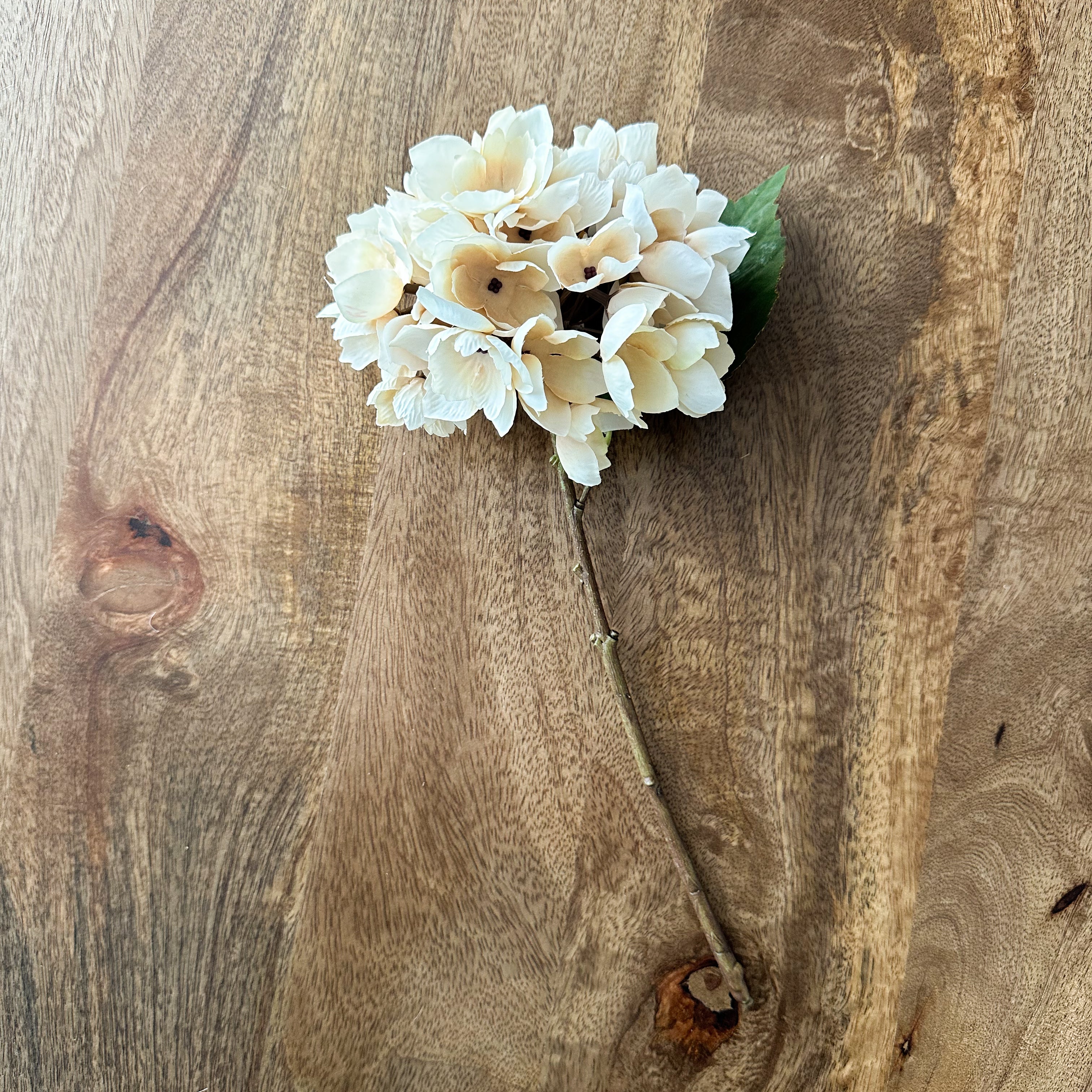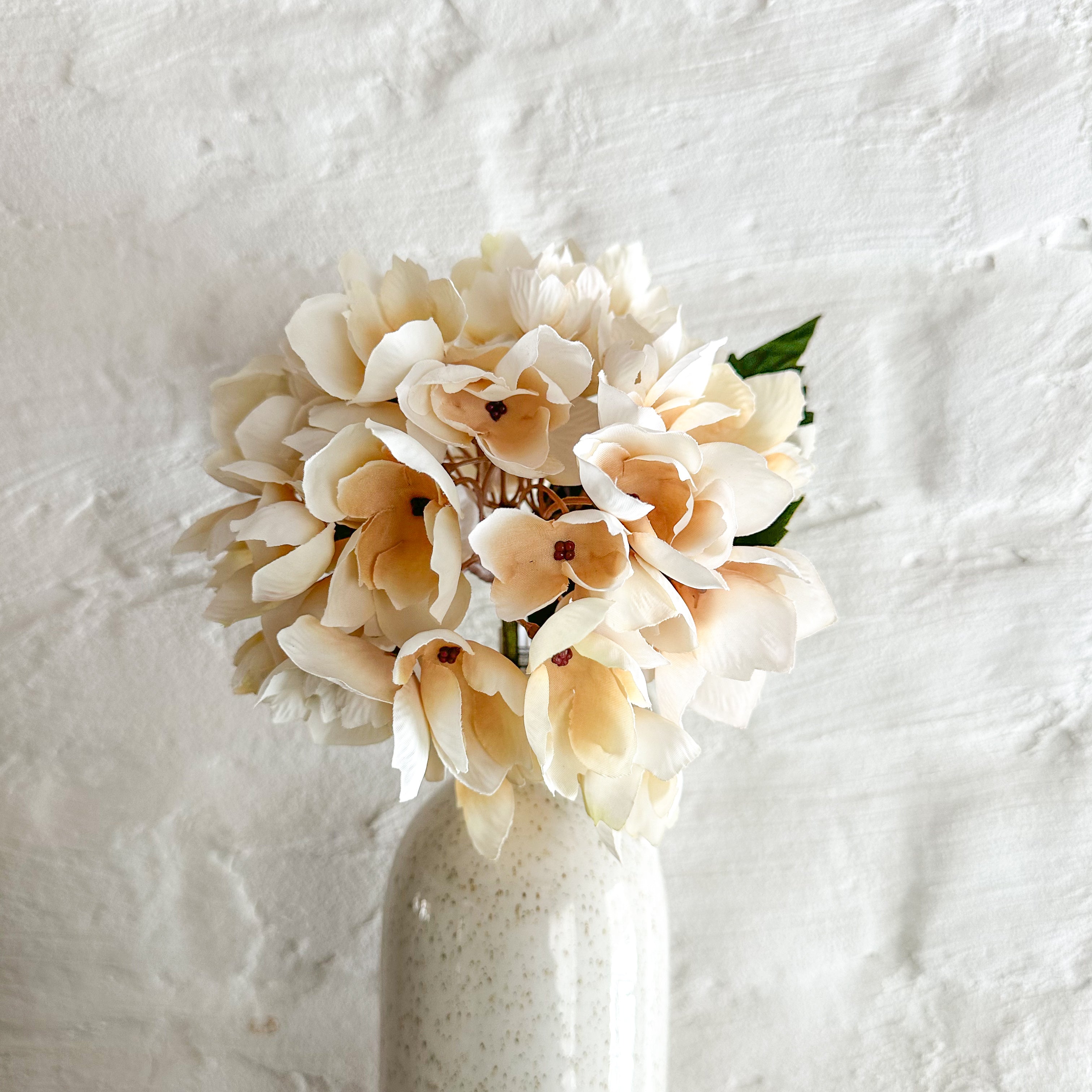 Marshmallow and vintage ivory petals feeling just on the edge of drying, these faux hydrangea stems are so realistic and sweet.