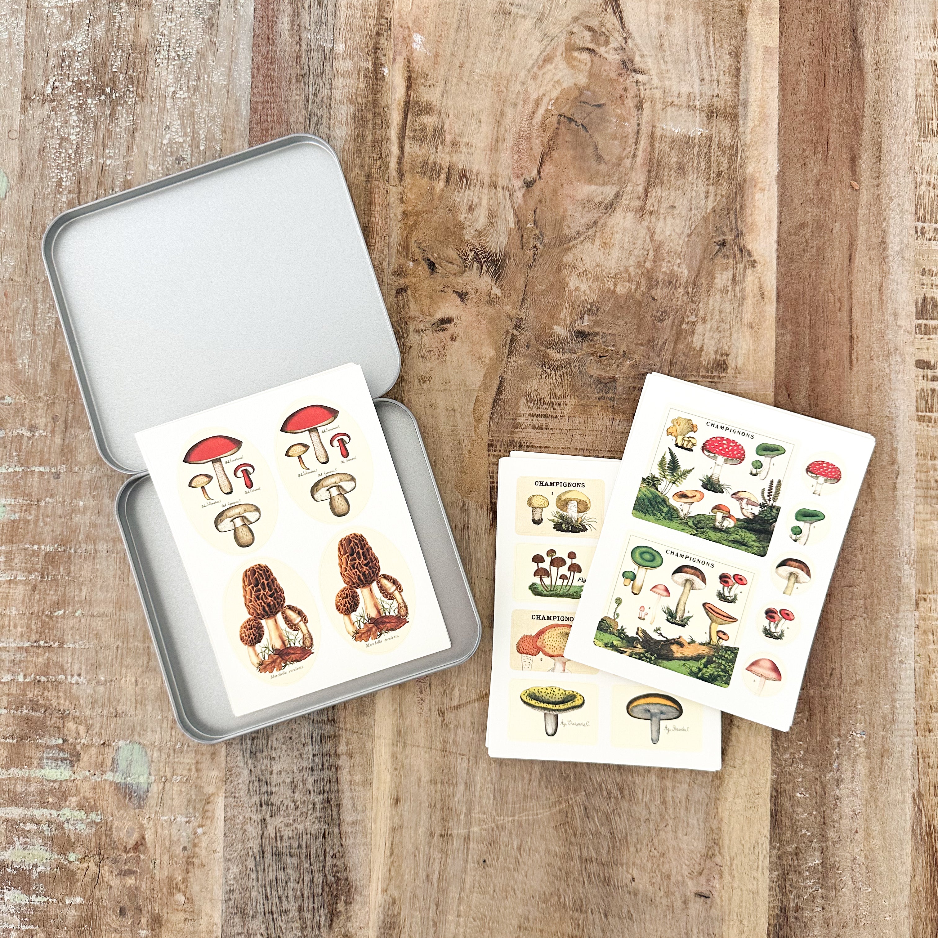 Transform your letters and scrapbooks into nostalgic keepsakes with the Vintage Print Mushroom Stickers. This simple tin holder features an array of beautiful fungi-inspired designs that will add a touch of whimsy to any project. Perfect for the nature lover in you.